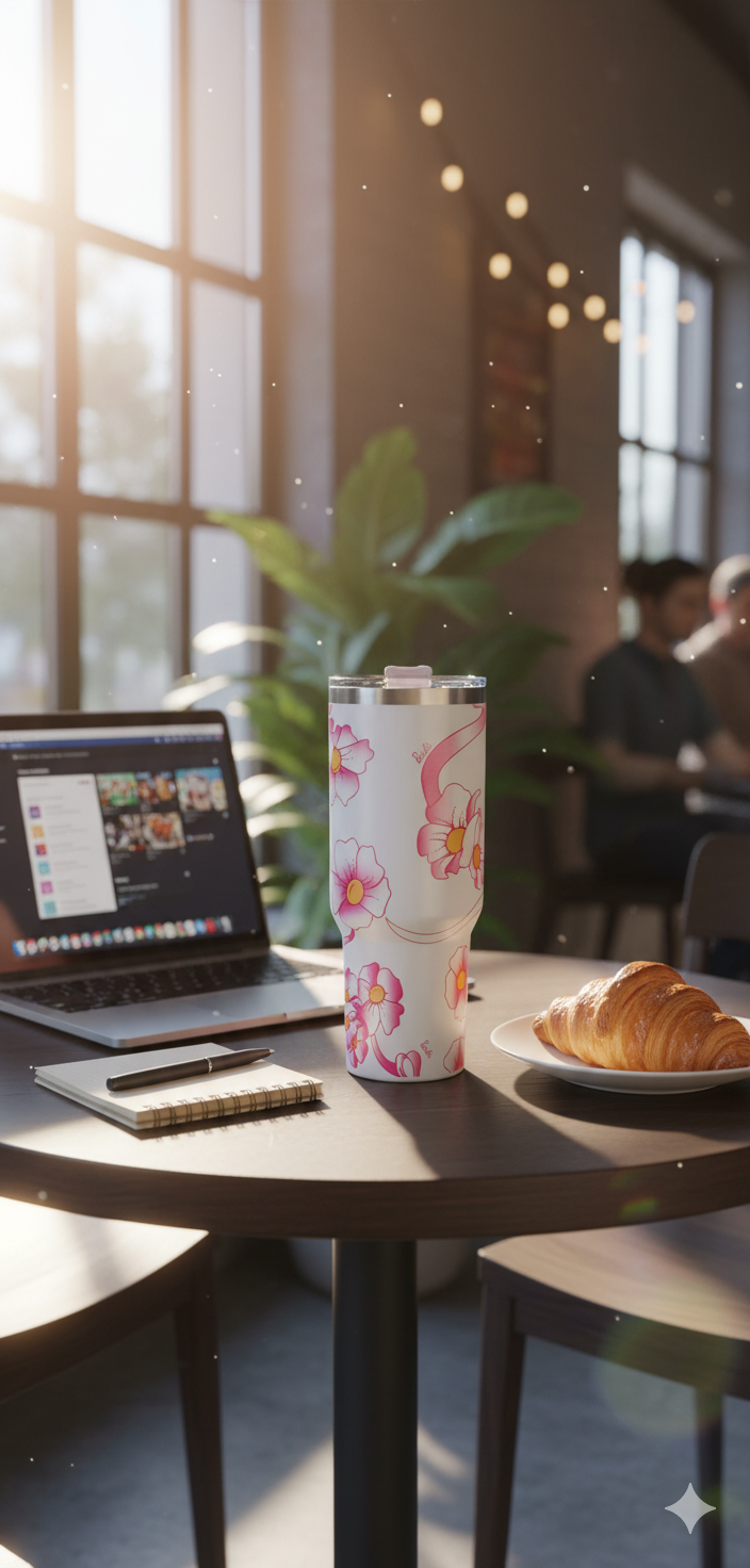 Stanley-Style 40oz Insulated Tumbler – Premium Stainless Steel - Barbie Pink Floral
